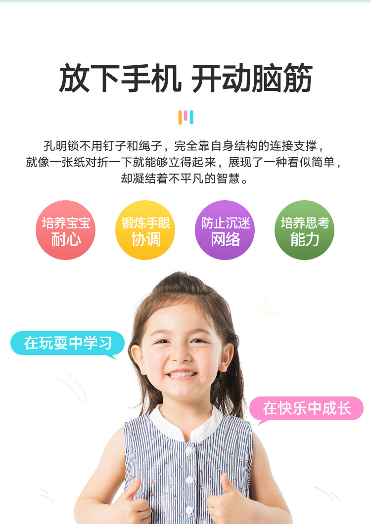 Kongming lock Luban lock single color children six-year-old educational building block toy large student brains adult