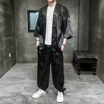 Tang suit summer Chinese style suit sunscreen suit Men's ice silk Han suit ultra-thin loose large size Zen suit tea suit two-piece suit