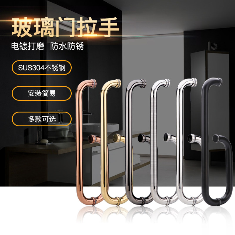 Stainless steel 304 bathroom handle shower room sliding glass door modern minimalist L-shaped door handle powder room sliding door