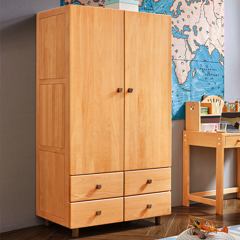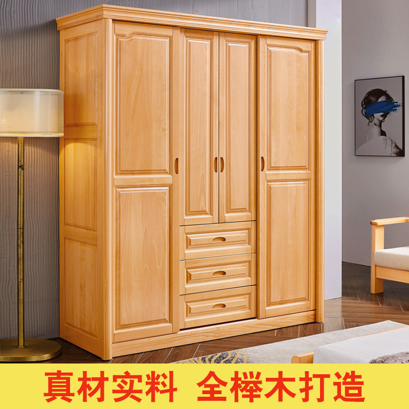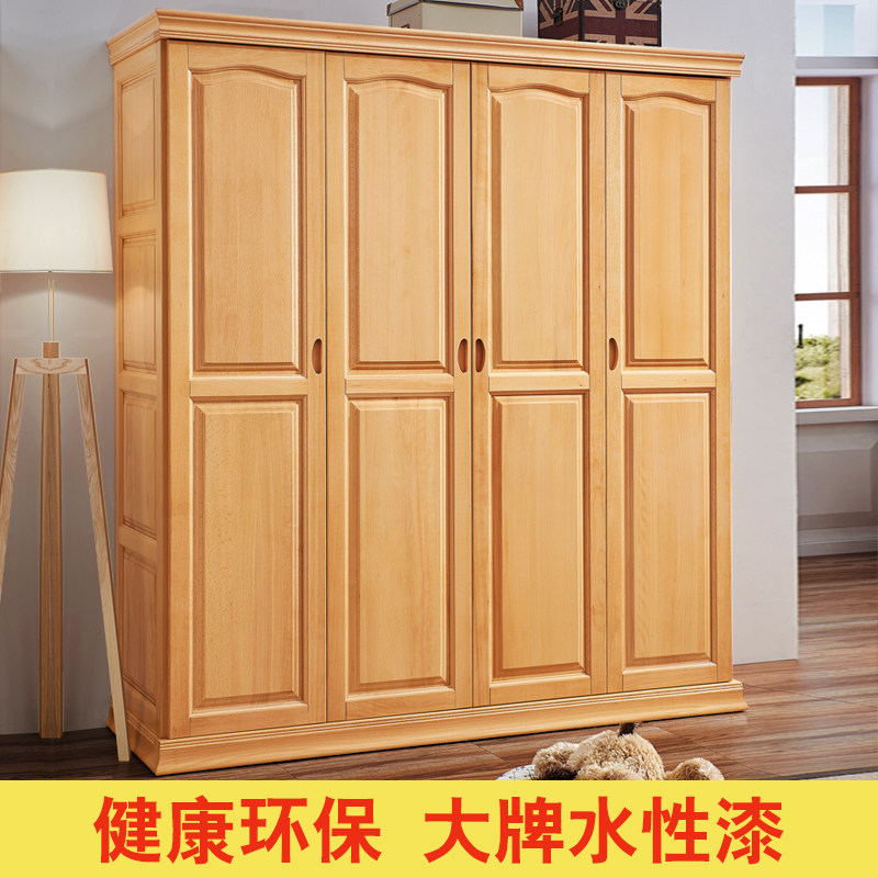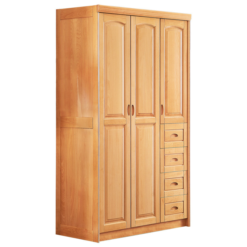 Log wardrobe three-door wardrobe assembly storage cabinet storage cabinet small apartment beech children's three-door wardrobe all solid wood