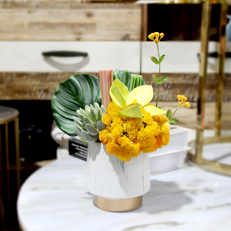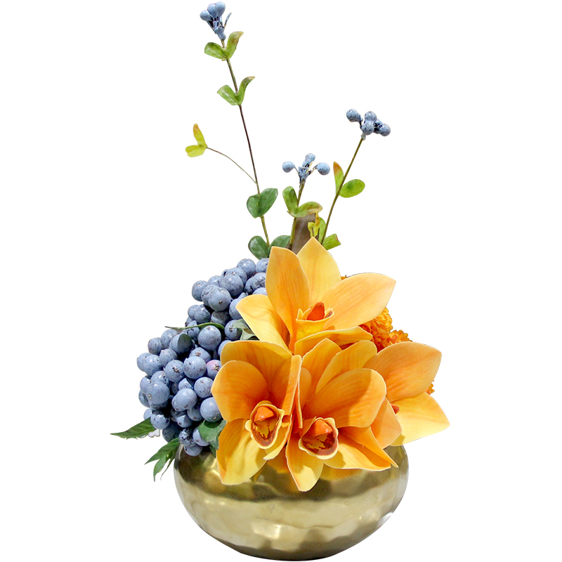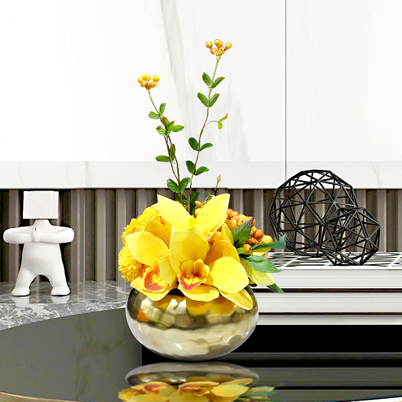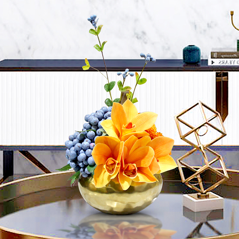 Light luxury dining table simulation flower decoration flower decoration model room living room golden vase flower arrangement red bean fruit fake flower