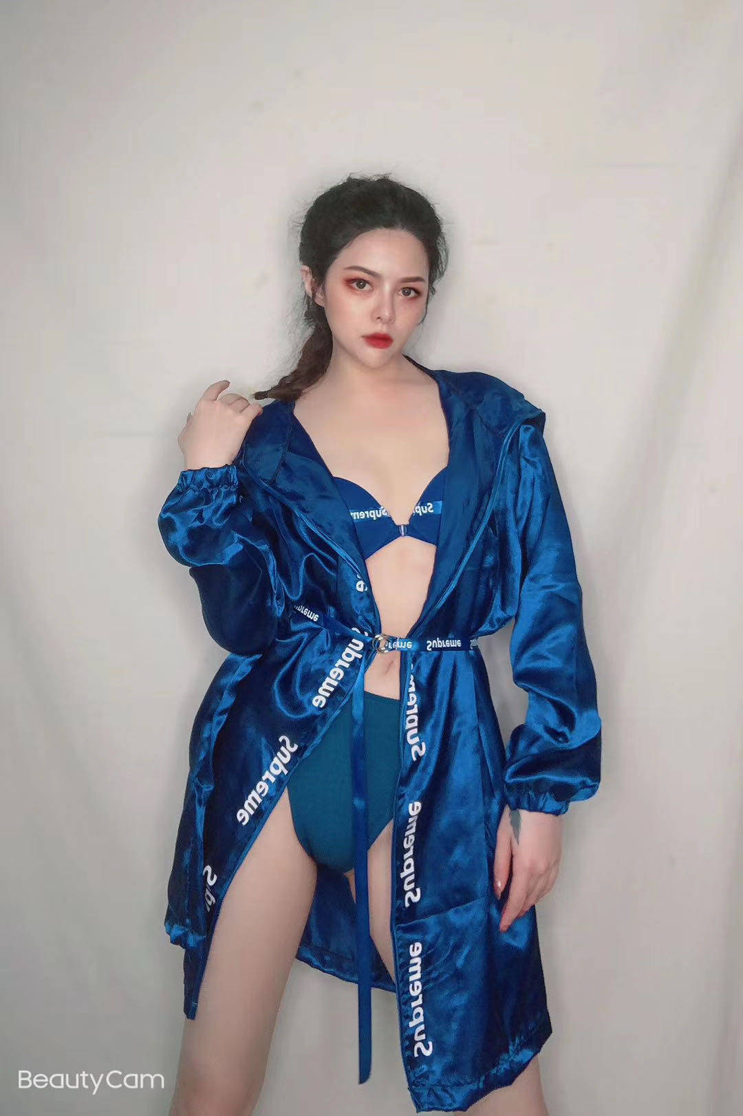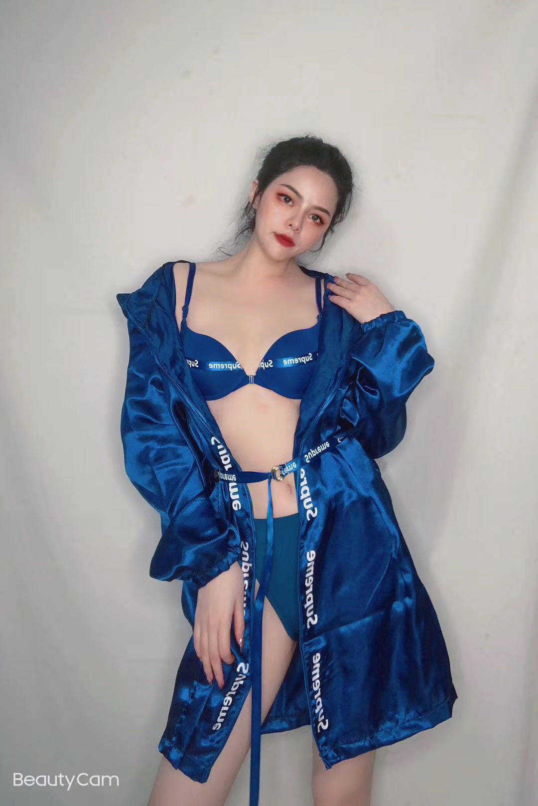 The blue full set includes the waist bag hat as long as the coat sends the belt bra triangle belt jacket bra triangle belt as long as the waist bag as long as the hat