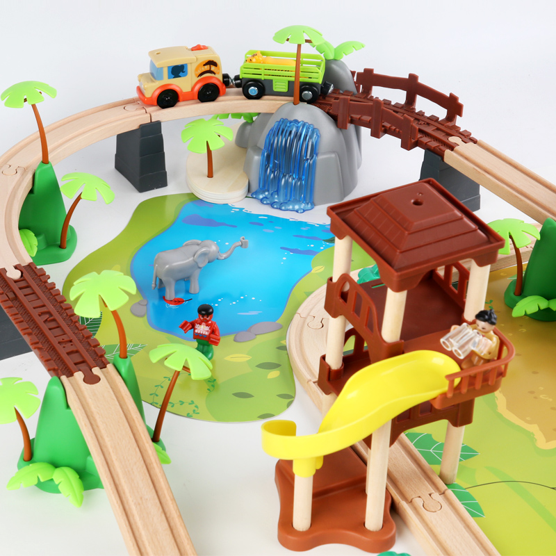 Children's early education Puzzle Electric Rail Train 1-2-3-year-old boy Wooden City Transportation Package Toy Building Blocks-Taobao