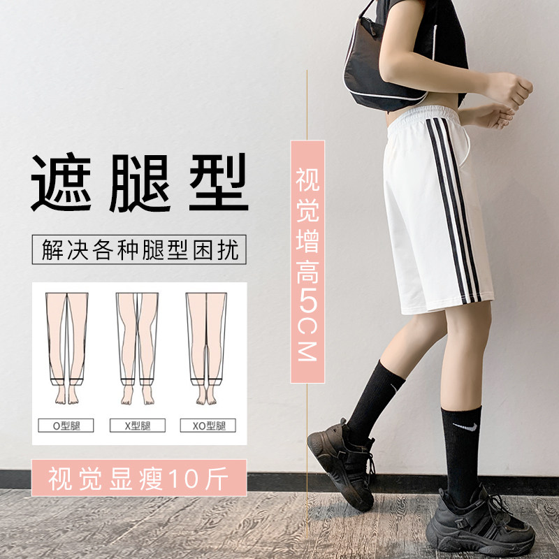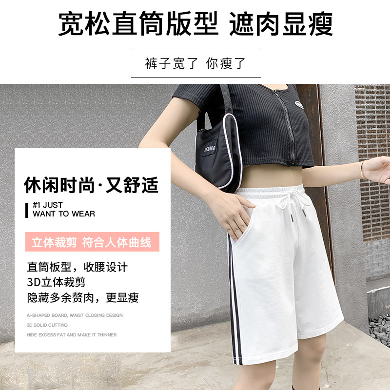 White five-point pants women's summer thin loose straight-leg tide ins high-waisted large size cotton slim sports shorts