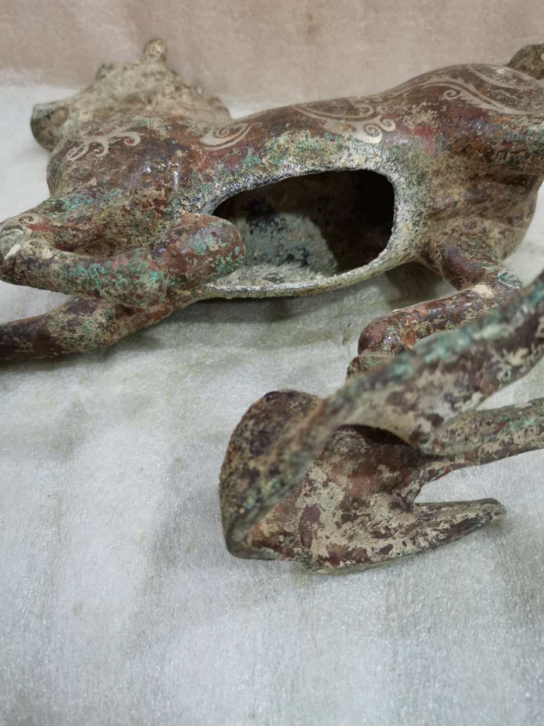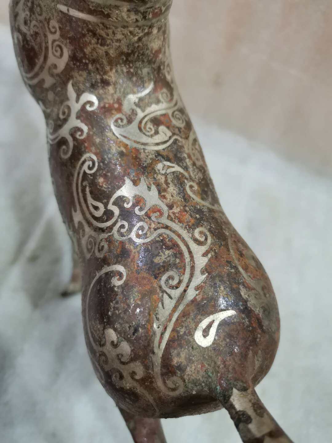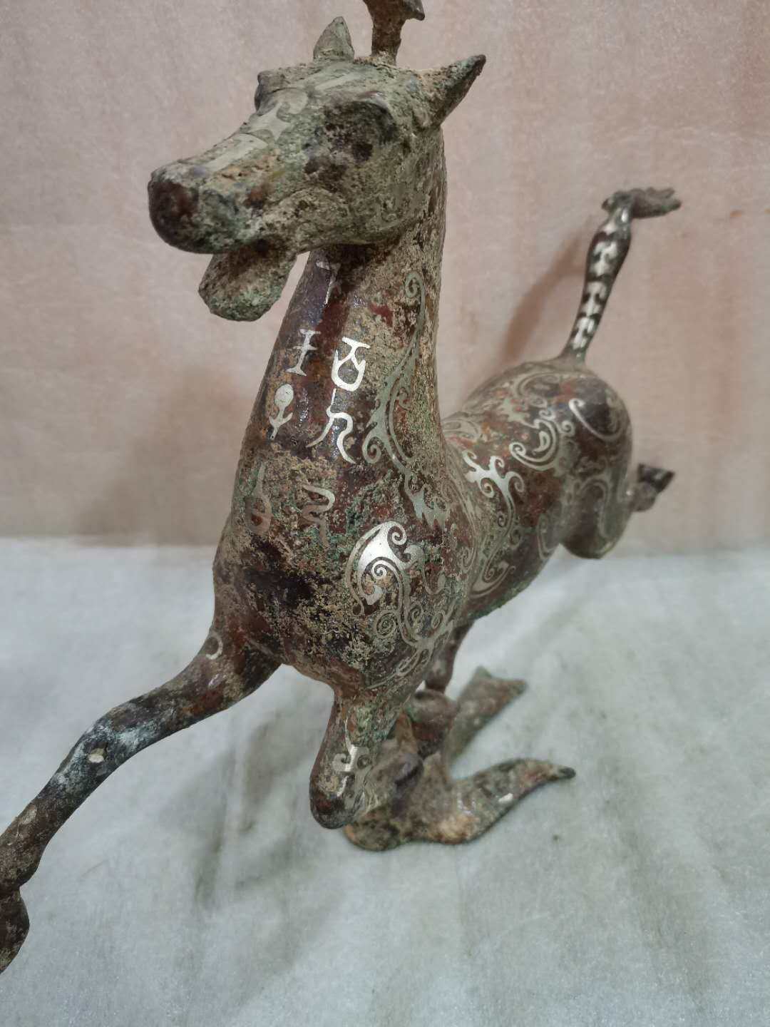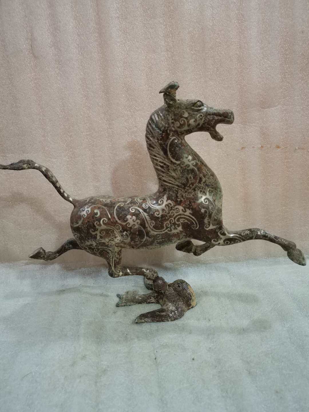 Imitation ancient bronzeware Clive silver horse set foot trexen genuine silver real bronze red spot green rust pendulum with shadow play and props