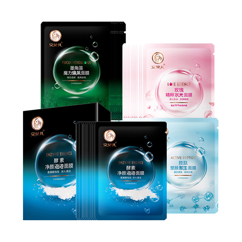 10 pcs Fucus Magic Illuminating Mask 10 pcs Peptide Renewing Mask 10 pcs Rose Essence Hydrating Mask 10 pcs Enzyme Purifying Bubble Mask
