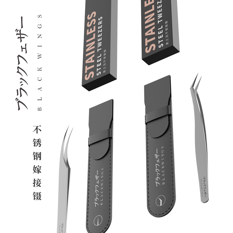 Black feather stainless steel single beauty lash eyelash tweezers dedicated to high precision eyelash tweezers gold feather dolphins