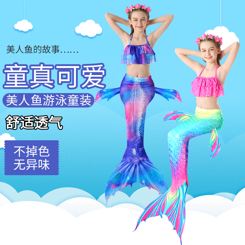 Colorful Mermaid Dresses Children Princess Fish Tail Swimsuit Suit Can Be Launched Girl Swim Toddler Costume