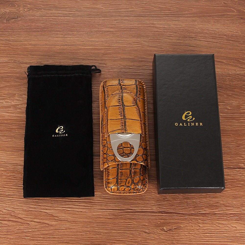 Cigar leather case Portable cigar case Leather 2 cigarette case to send cigar scissors cigarette case humidor exquisite gift box