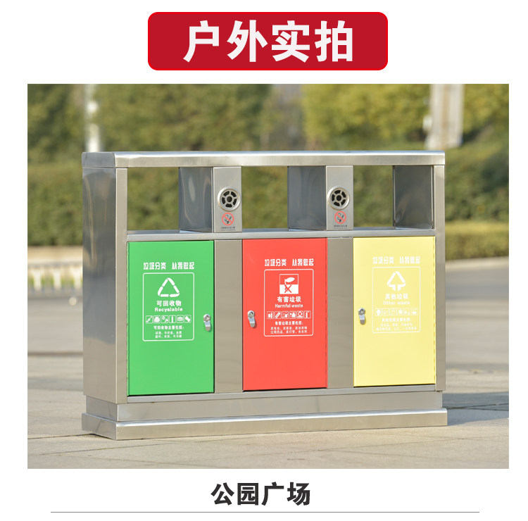 Outdoor Trash Can Big stainless steel sanitation classified fruit leather case Community Park Wind Scene Commercial with lid steel wood