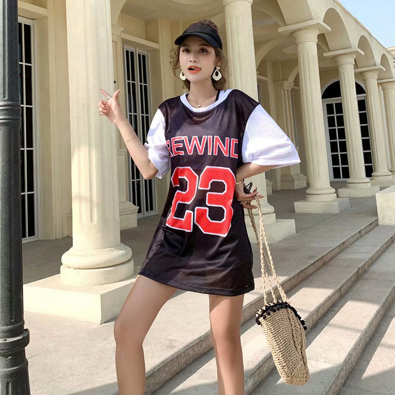 Short-sleeved girls basketball suit sports two-piece swimsuit Female conservative student three-piece set thin belly loose swimsuit