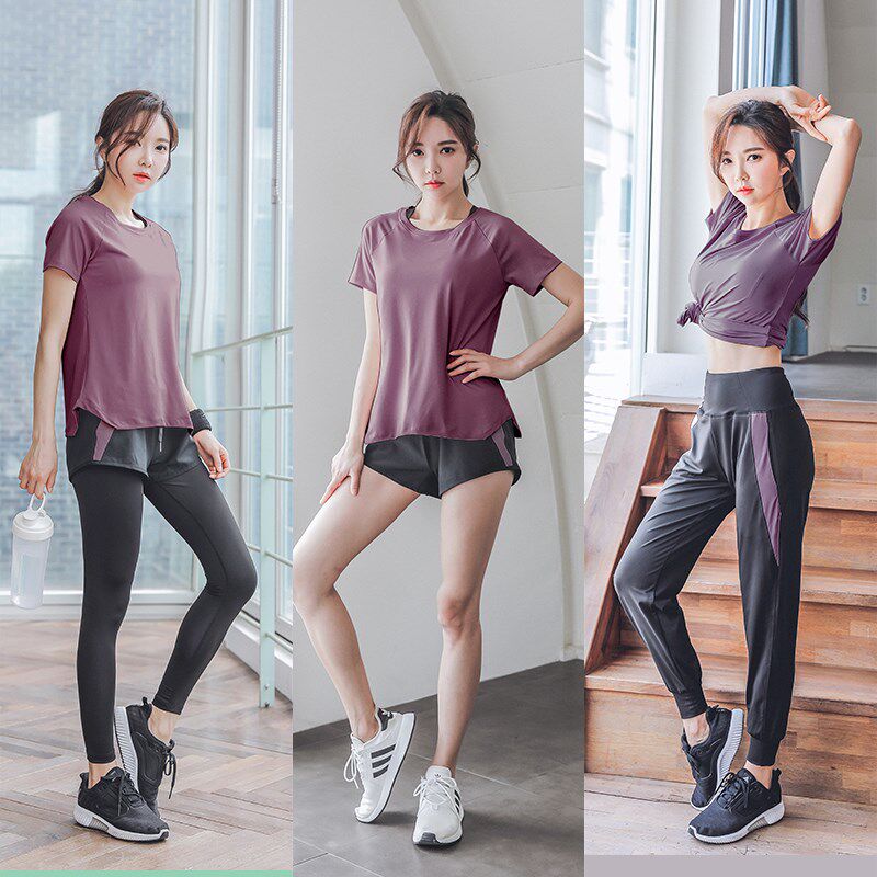 Summer yoga clothes women's morning running clothes quick-drying clothes fashion gym sports suit thin section is thin and loose large size