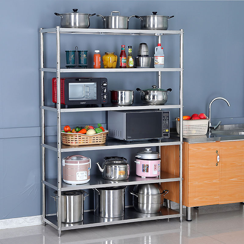 Stainless Steel Kitchen Shelving Ground Floor Multilayer Cabinet Microwave Oven Storage floor Shelf Home Balcony Shelving Boiler 6