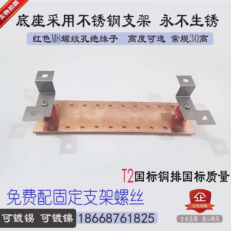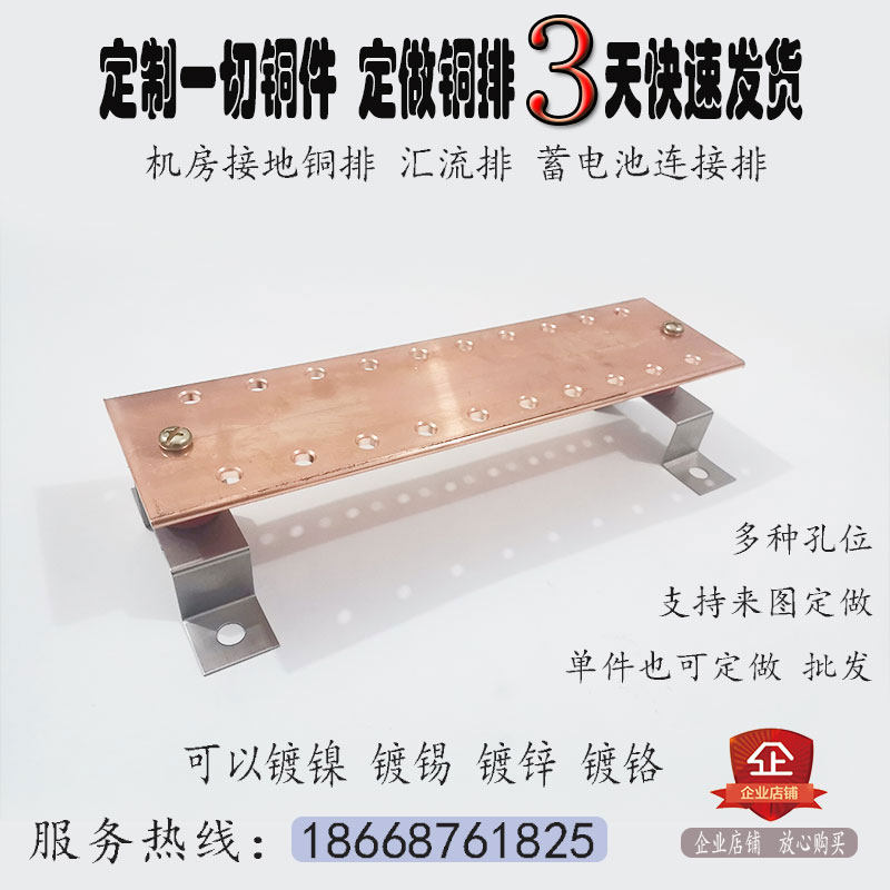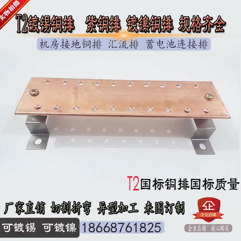 Customized T2 copper bar bus bar grounding copper bar machine room ground bus bar tinned processing perforated copper bar