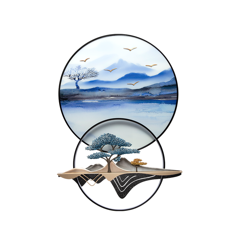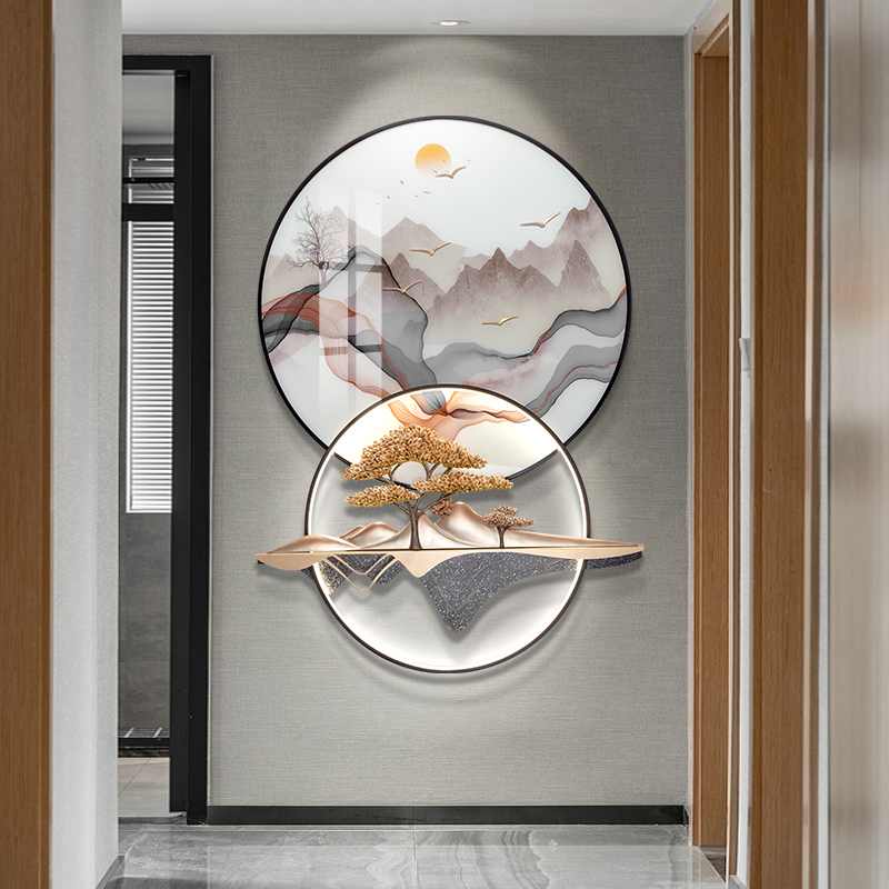 New Chinese Living Room Genguan Background Wall Decoration Painting Wall Decoration Hanging Decoration Light Lavish Pendant 3D Relief Iron Art Vertical