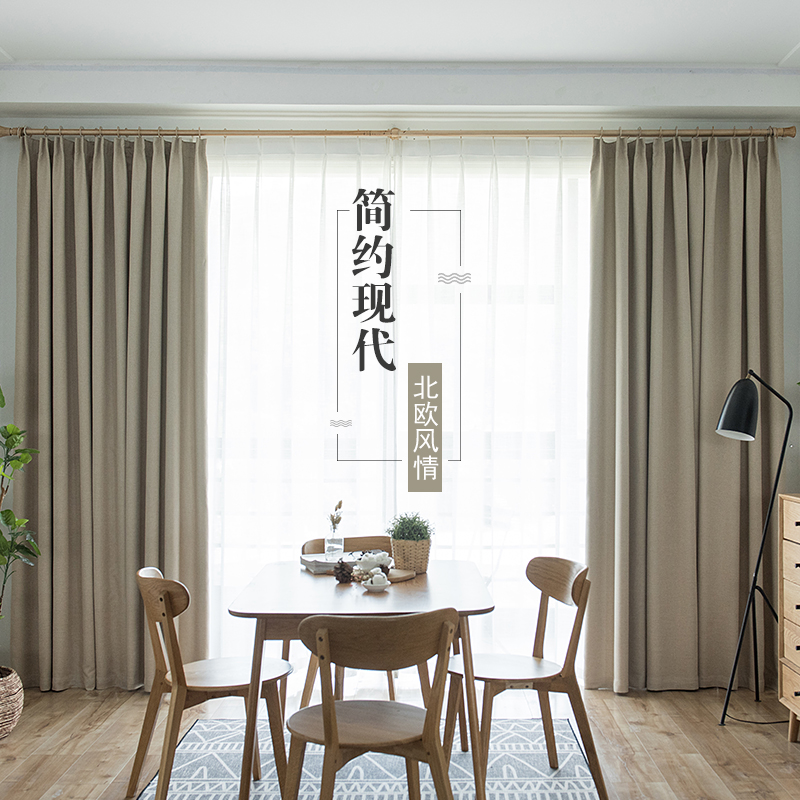 The Nordic style of style,Common pleats with a perforated curtain to wear with a bar curtain