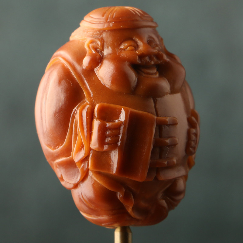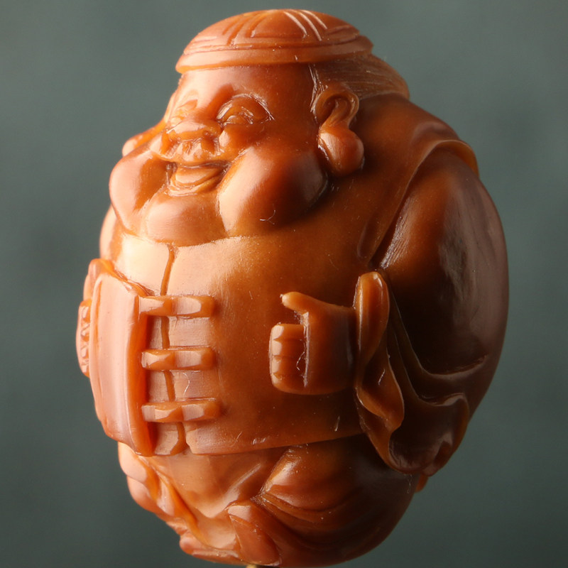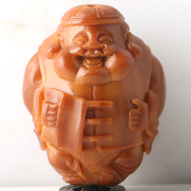 2 3x2 95cm (Landlord God of Wealth) Works by Cheng Fei Olive Nuclei Carving Three Flowers Old Oil Nuclei