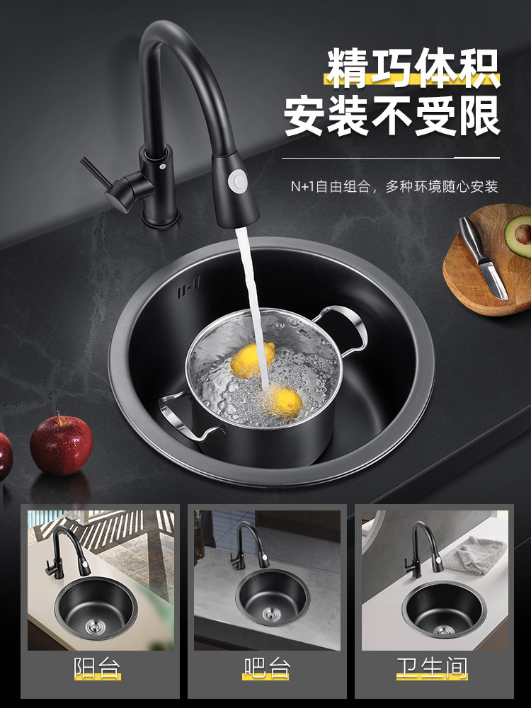 Elamey sink washbasin single-slot nano-sink black sink 304 stainless steel round basin balcony