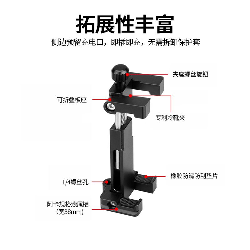 Ulanzi Folding Metal Mobile Phone Clip Ultra-thin Portable Hot Shoe Fixing Clip Live Selfie Photography Quick Install Bracket