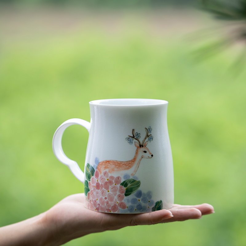 Deer hand-drawn cup Bucks Deer hand-drawn cup Female deer-painted hand-drawn cup Cup Female deer-painted cup-drawn cup-by-hand cup Bucks Black Gift-box Linji-cup Draw-cup Cup Female
