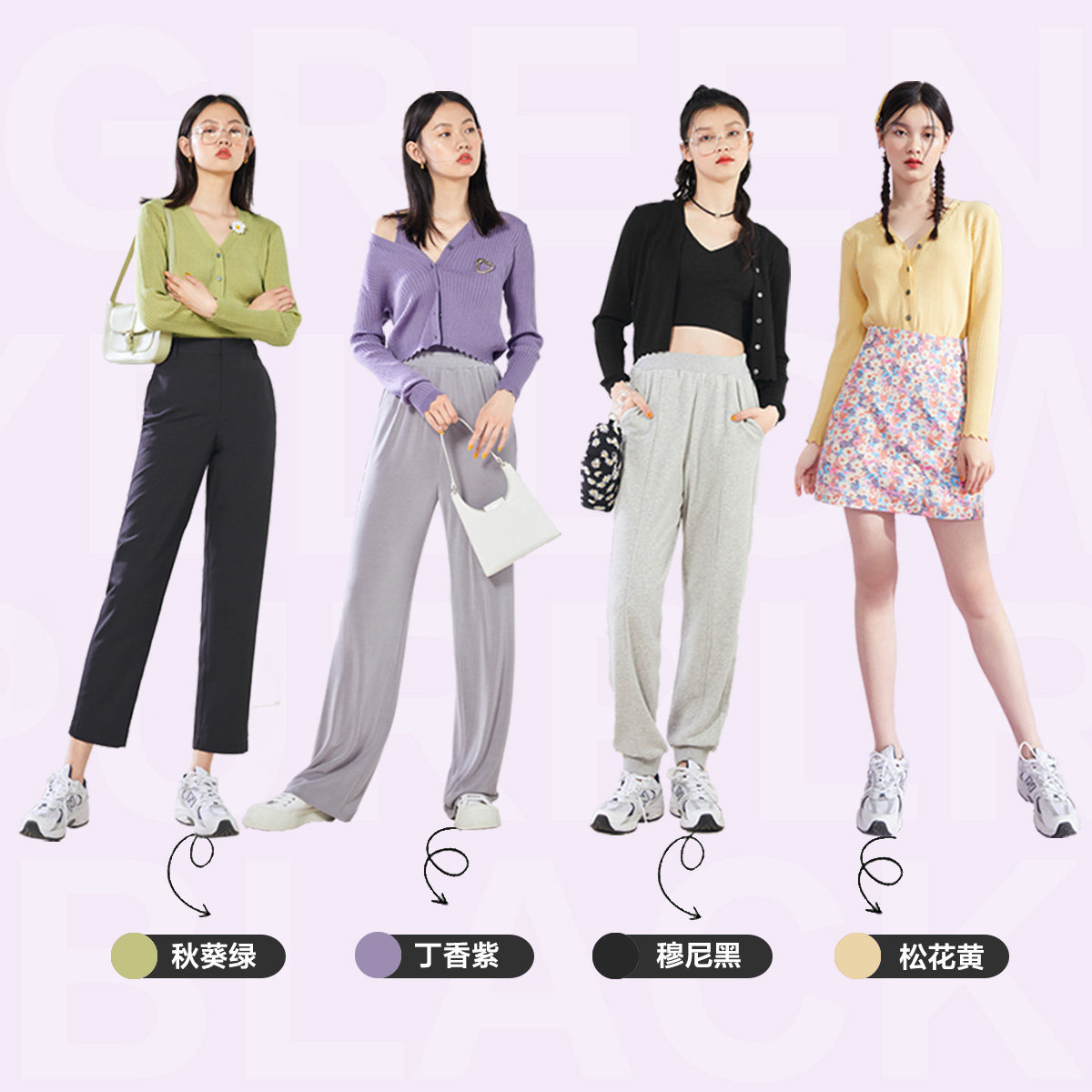 Black cardigan (spot) black cardigan (cash) purple cardigan (spot) purple cardigan (cash) green cardigan (now)