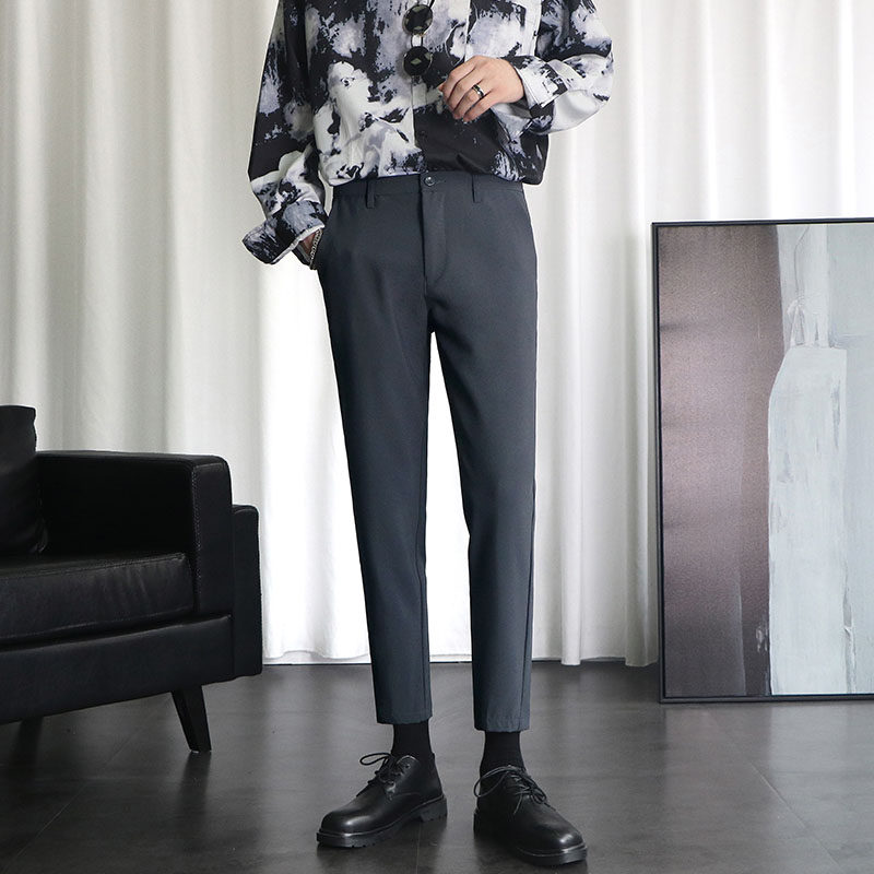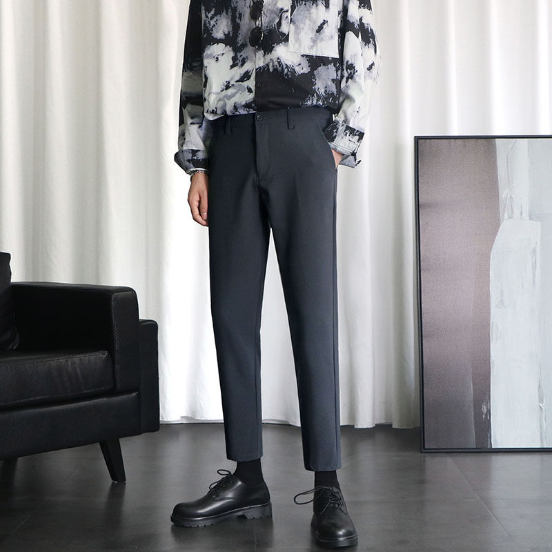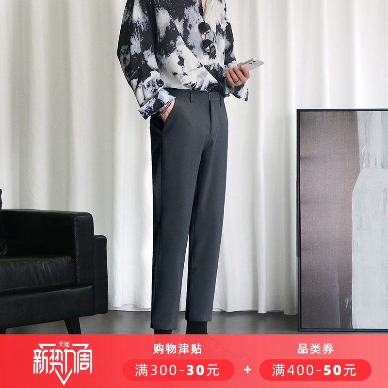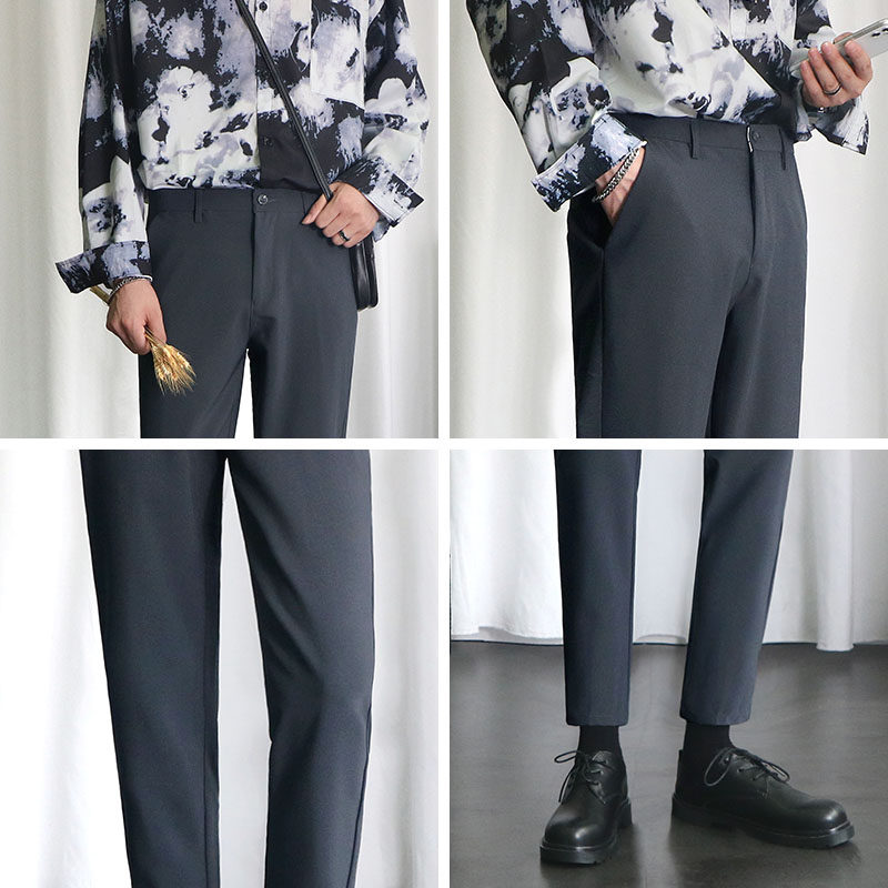 Falling straight-leg pants men's Korean version of the trend autumn new cropped small trousers drape casual slim small foot suit pants