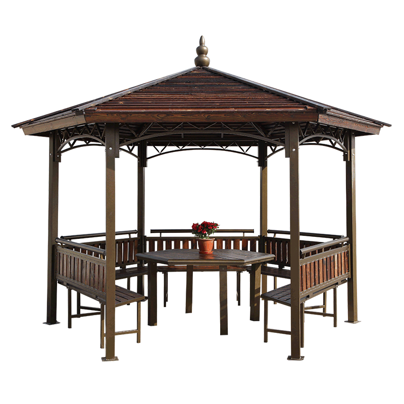 Outdoor new Chinese fiberglass tile log house courtyard terrace garden carbonized wood outdoor anti-corrosion wood pavilion hexagonal pavilion