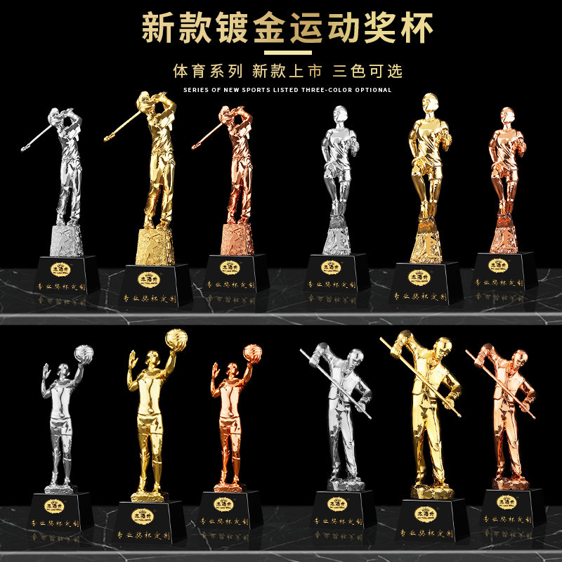 Golf Trophies Billiards Trophies Slam Dunk Football Elites Badminton Trophies Table Tennis Players Running Trophies Volleyball Trophies Baseball Stars Taekwondo Trophies Skipping Champions Swimming