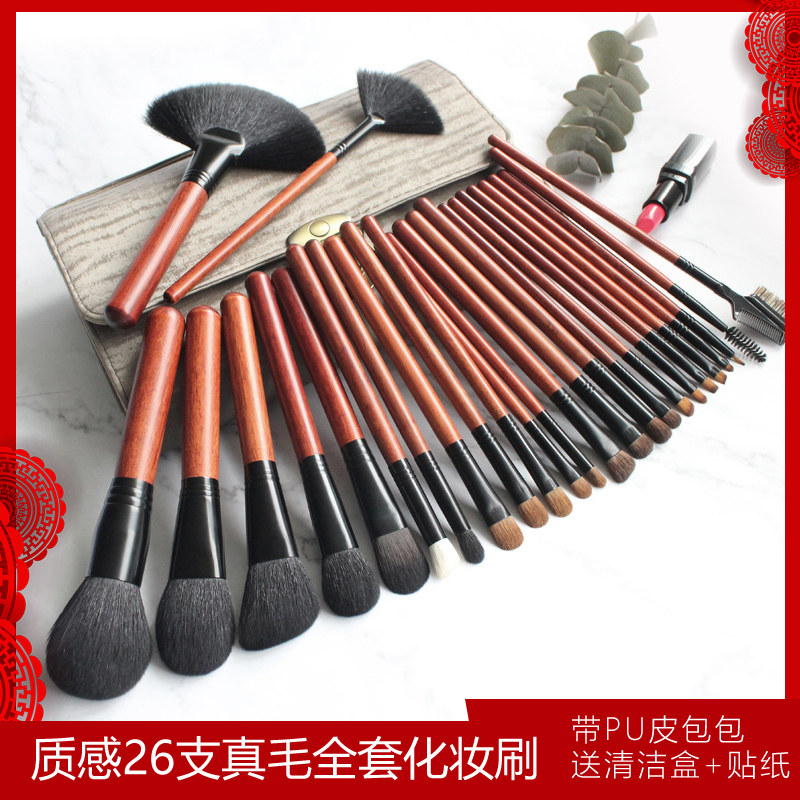 AIEVELYN professional real hair makeup brush set full set of eye shadow brush yellow wolf tail hair facial beauty brush 26 pieces