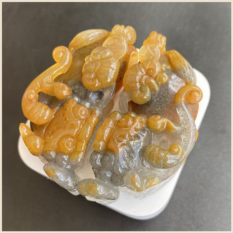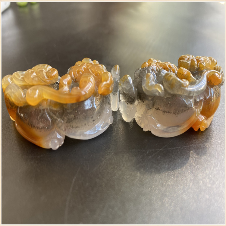 Yellow Dragon Jade Ice Seed Golden Sand Leopard a couple of couples suspended for a couple of couples suspended in the Yin and Yang's eye for a fortune.