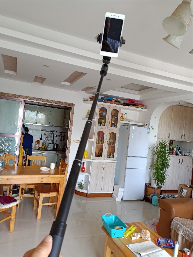 Mobile phone or camera with short portable minimum 19cm light handheld self-slapping bar for maximum 73cm extension of the lever bracket