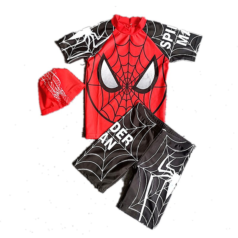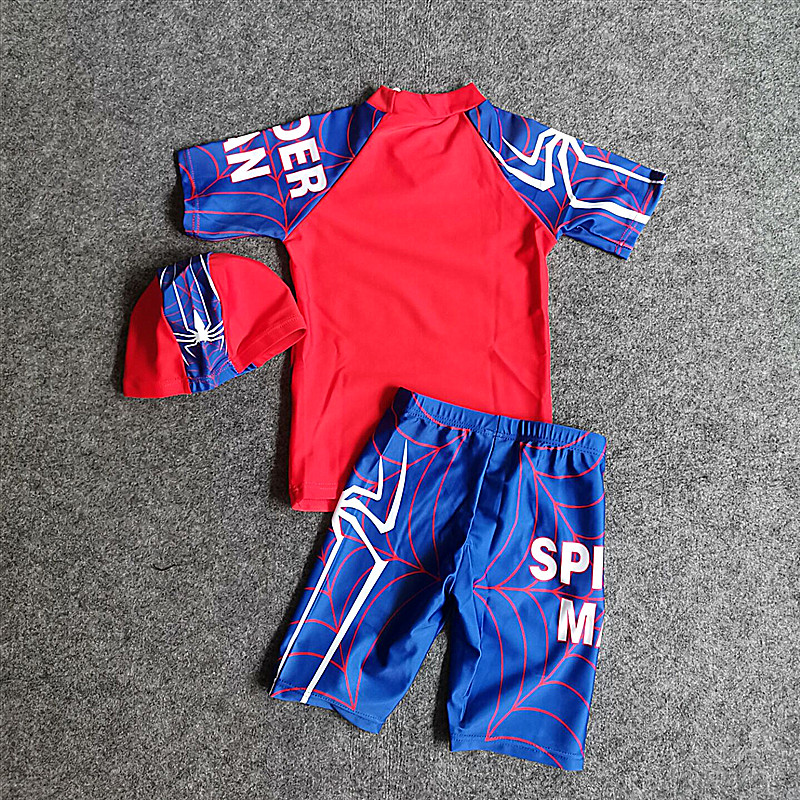 Children Two-style swimsuit boy Three sets with cap small CUHK Boy boy Baby cute Spiderman Speed Dry swimsuit