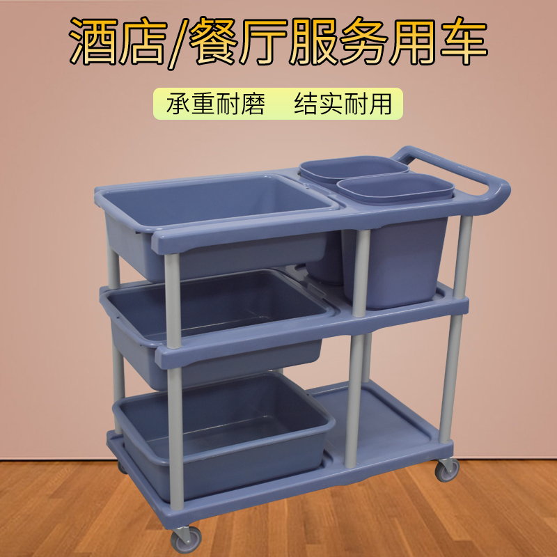 High quality plastic dinner plate collection car three-layer bowl chopsticks multi-function trolley hotel dining room mobile disassembly tableware