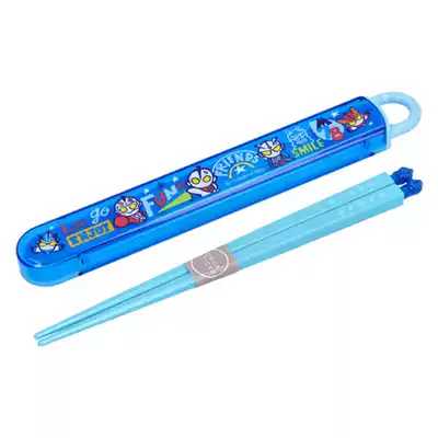 Spot Japanese Ultraman salted egg Superman children's tableware plastic chopsticks portable with storage box new blue