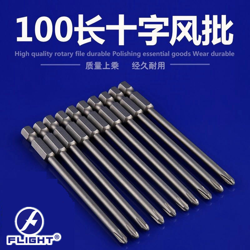 Flying single head 100120m m pneumatic screwdriver lengthened cross-batch head S2 strong magnet plus hard screwdriver driver gas batch head
