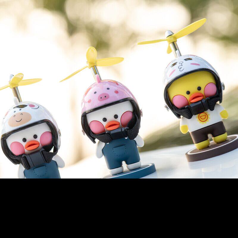 Car bicycle little yellow duck Bamboo dragonfly turbine increase duck Car decoration rearview mirror Social broken wind duck wearing helmet