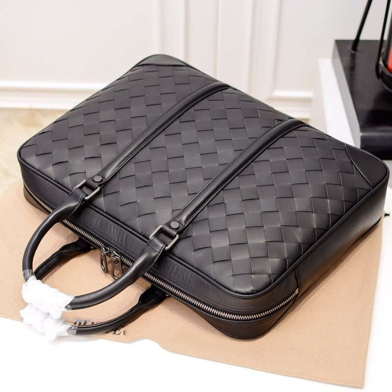 Waxed Calf Leather Woven Men's Handbag 2022 New Fashion Brief Business Single Shoulder Diagonal Satchel Briefcase