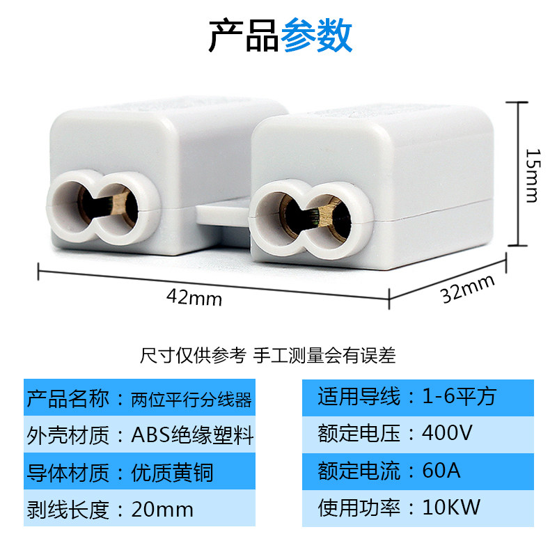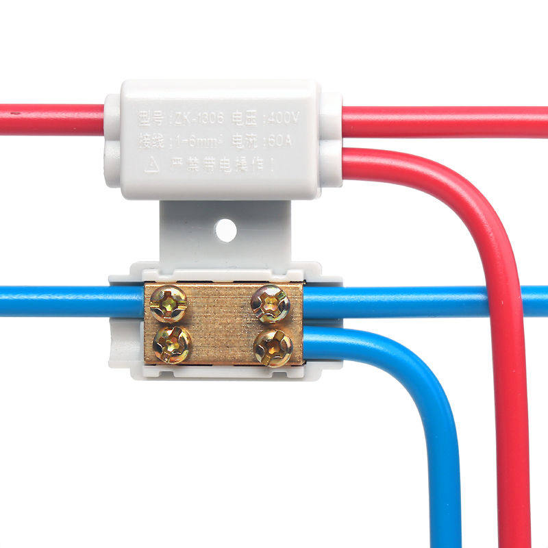 Two-position disconnection-free extension line 1-6 square high-power terminal block two-way two-way T-type shunt two-in four-out