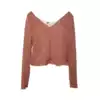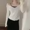 Hong Kong style T-shirt women's smart top design sense of summer thin long sleeves thin off-the-shoulder V-neck retro knitted suspenders