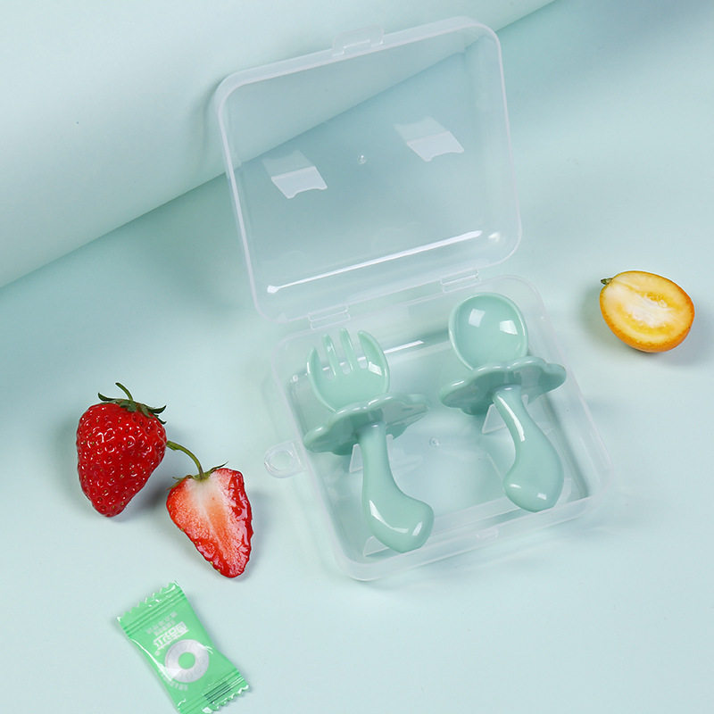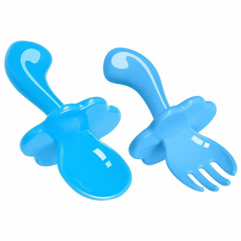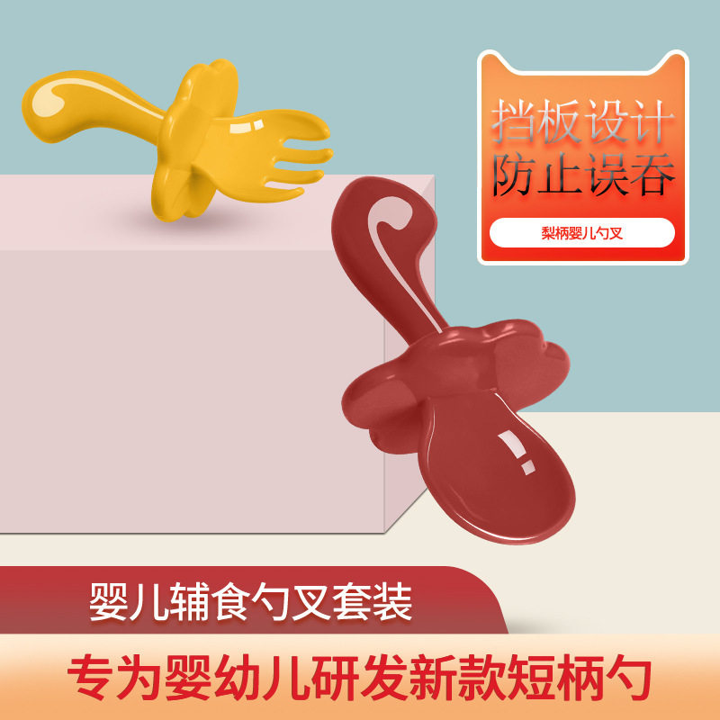 Short handle spoon Baby 1 year old 2 with bezel spoon fork set Baby learn to eat spoon practice training spoon fork Short handle