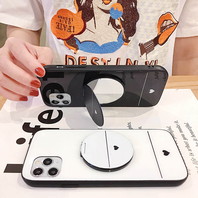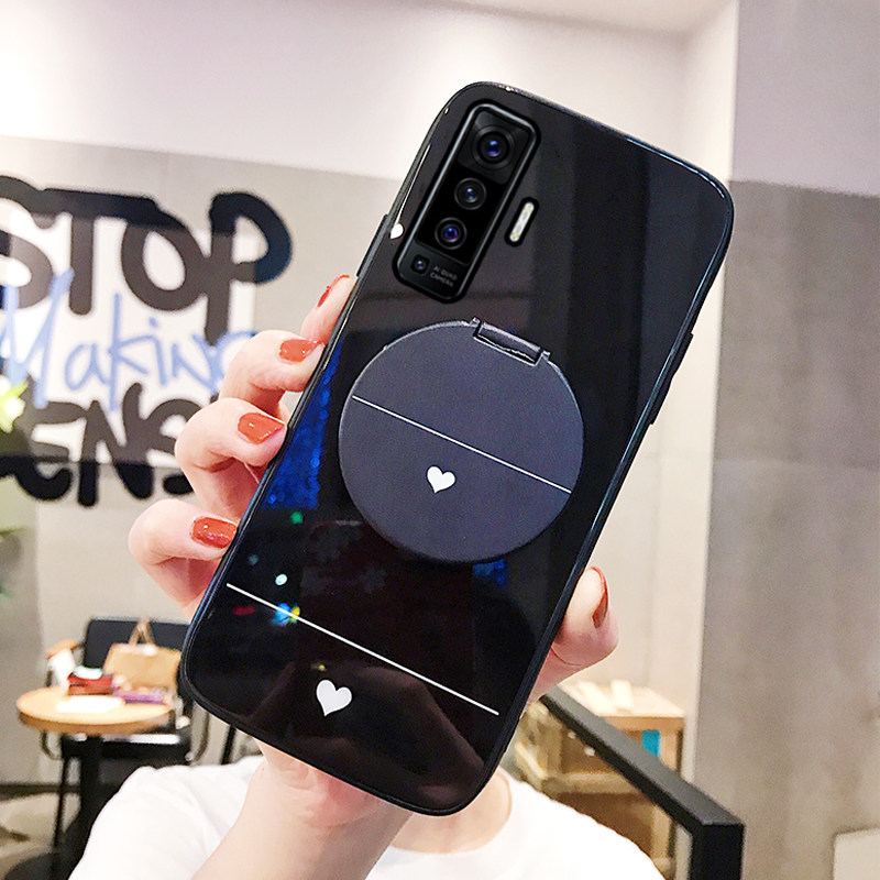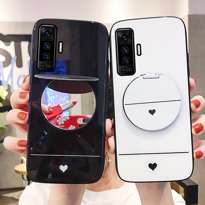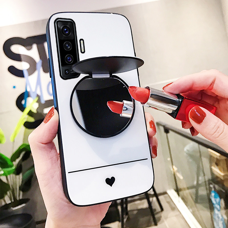Vivox50 mobile phone case x50pro glass drop-proof new vivox women's love simple vivo50 make-up mirror bracket 5g version shell fashion x50por mirror oval