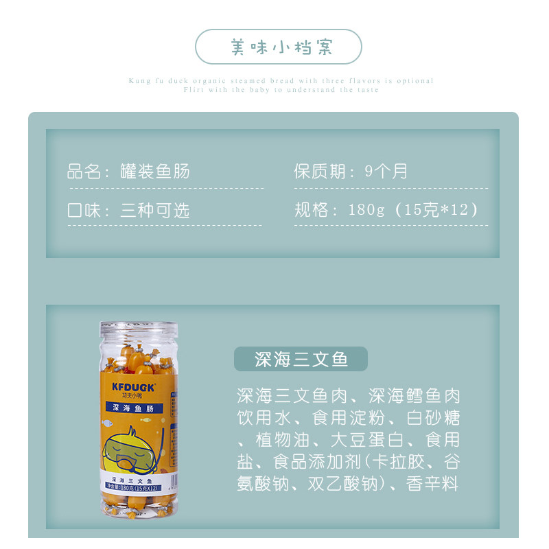Kung Fu Duck deep sea fish gut 3 cans cod salmon shrimp baby ready - to - eat seafood sausage sausage 180g