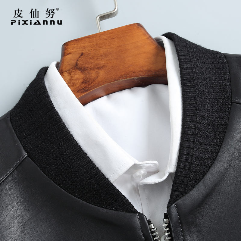 Henin's new imported fetal calf leather upscale genuine leather clothing men's baseball uniform with short handsome gas jacket jacket autumn