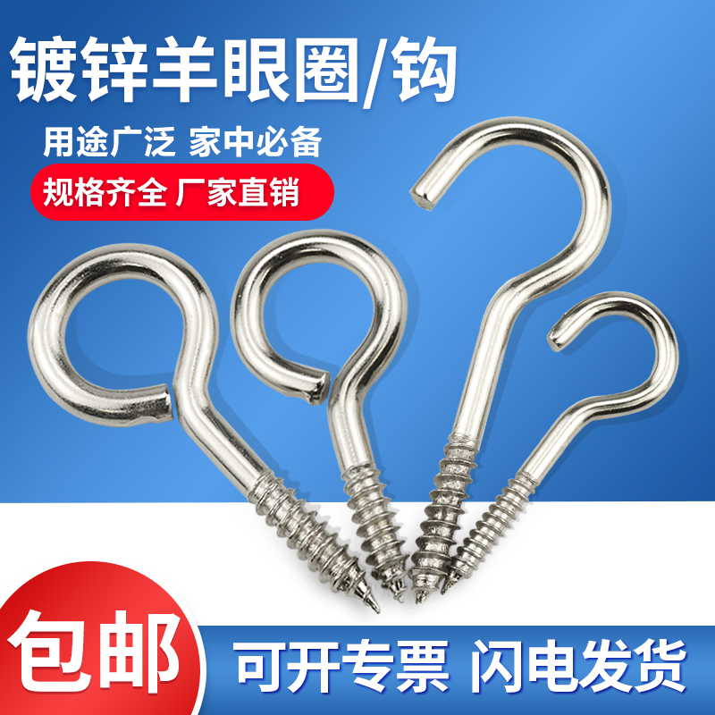 Nickel plated sheep's eye nail self-tapping screw hook hook ring iron hook sheep's eye wood screw iron question mark horn hardware hook
