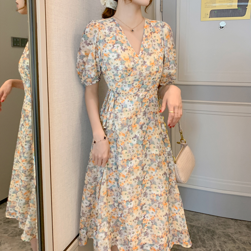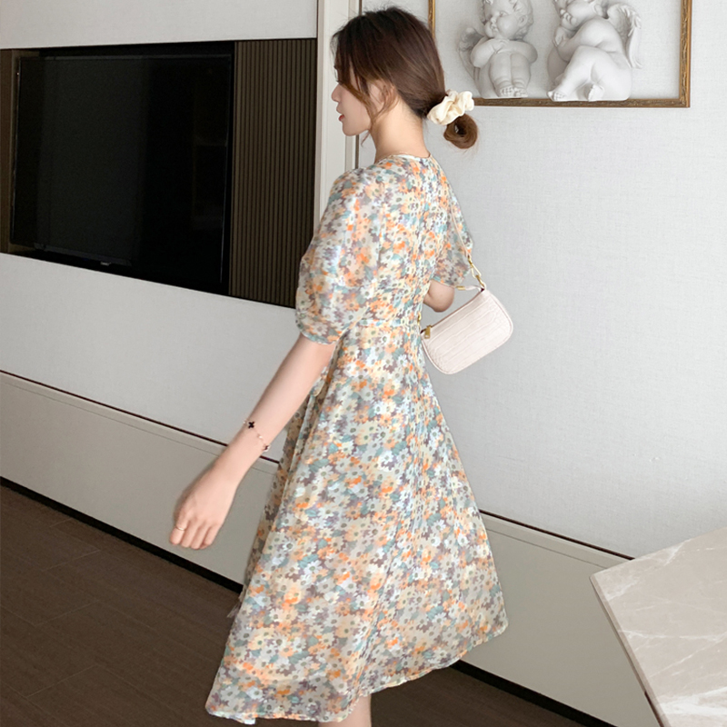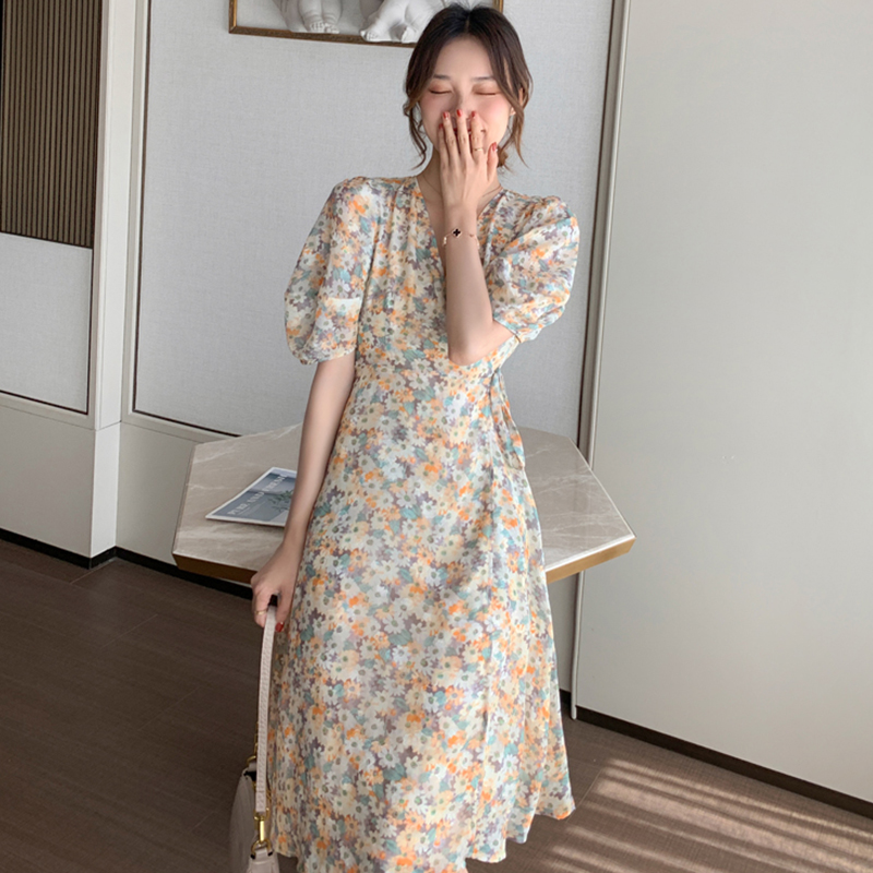 Foreign dress 2022 new summer temperament Goddess Fan Xiaodaisy Chrysanthemum Flowers Foreign Dress Light Cooked Wind Casual Long Dresses