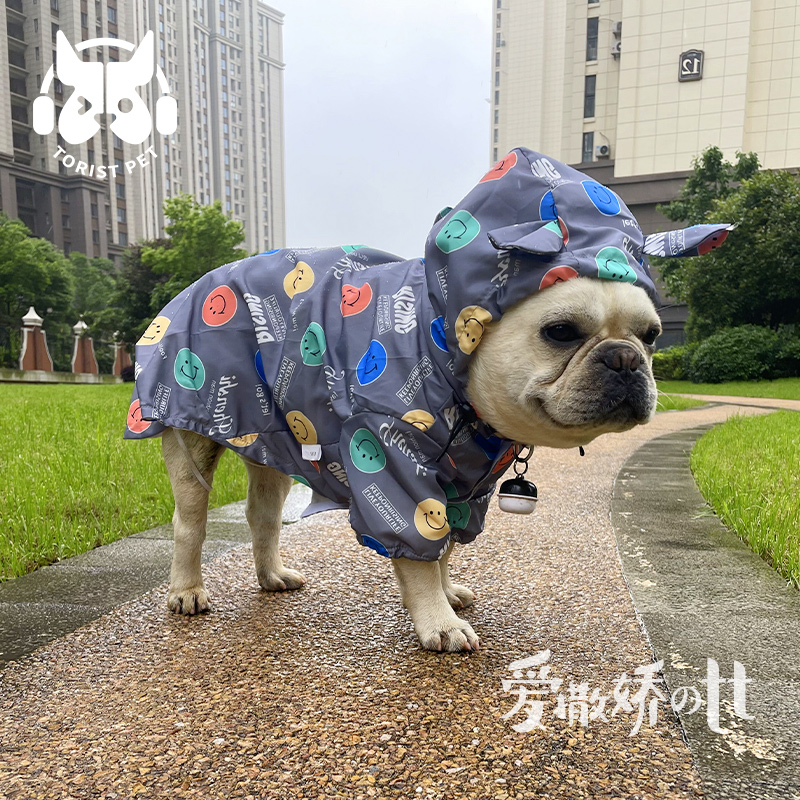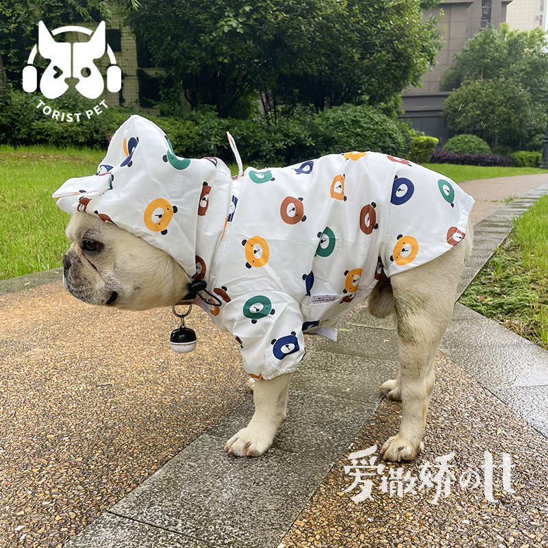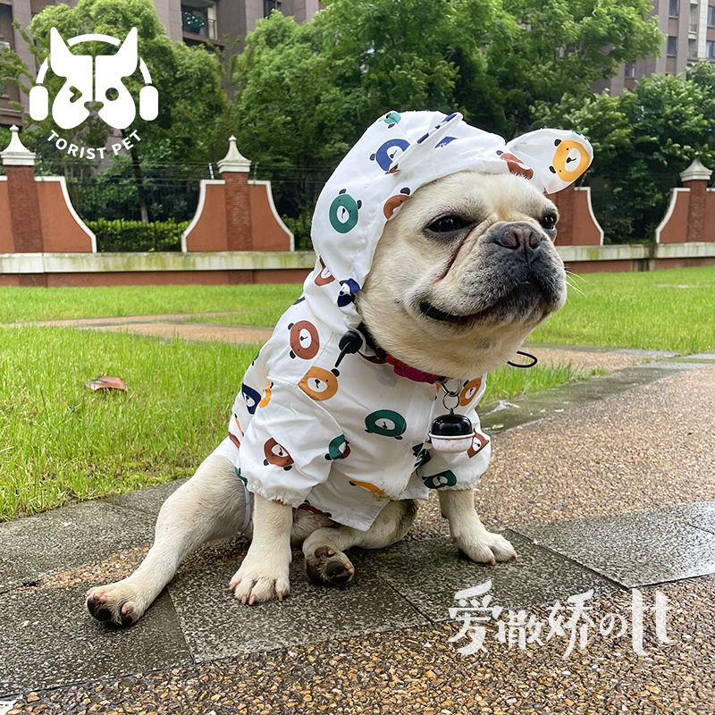 TT Pet Raincoat Waterproof Bear Clothes French Dog Spring and Autumn Thin Section French Waterproof Clothes Small Dog Umbrella