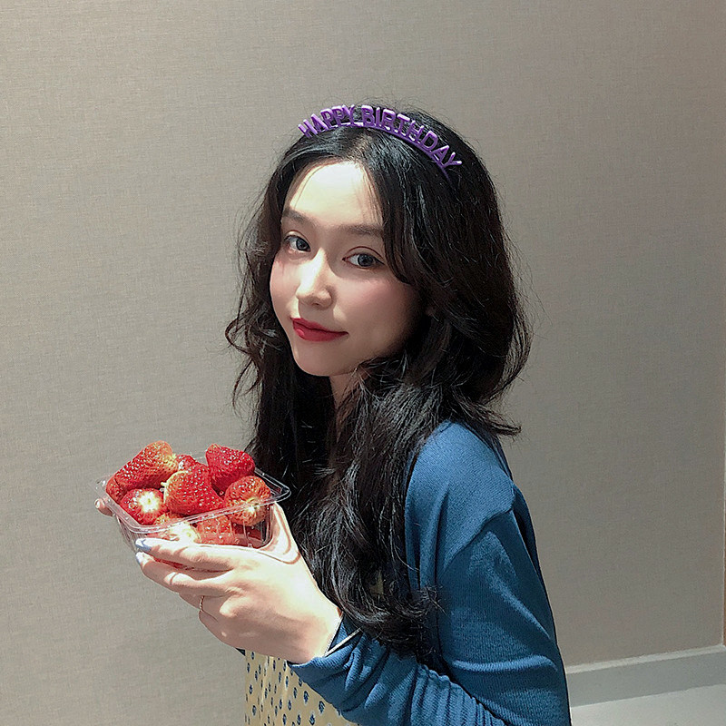 2020 new products new happy birthday hair band fresh Japanese and Korean hair accessories women's wild net infrared out simple hair band