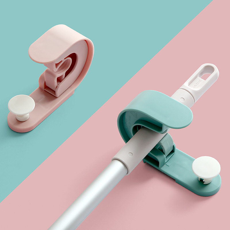 Mop hook frame Broom mop clip Snap storage powder room wall hanging strong adhesive hole-free fixing artifact