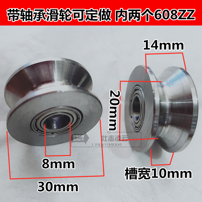 Belt bearing outer ring V type slotted shaft bearing steel pulley rollers two 608 bearing wheels diameter 30v shaped groove width 10mm