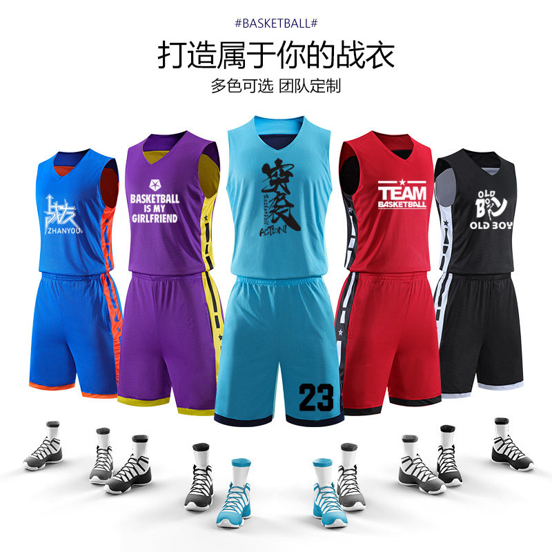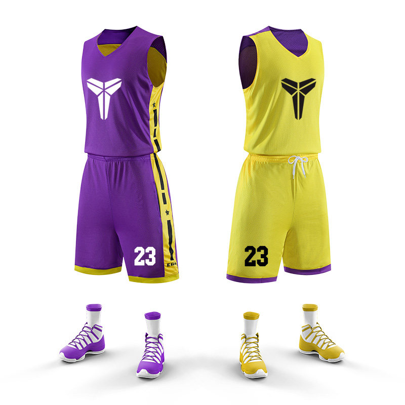 Double-sided basketball suit suit men's custom game team uniform sports training suit Kobe basketball jersey men's trendy purple